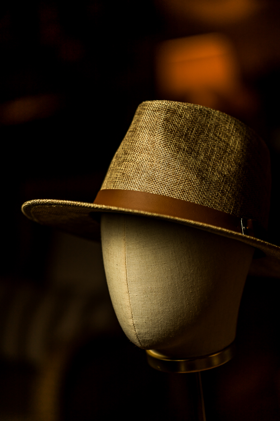 Chapéu na cor marrom, com cinta de couro caramelo, com o Biagi em baixo relevo.